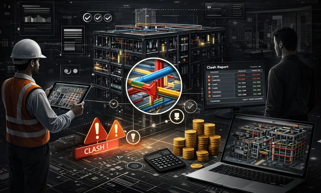 BIM Coordination & Clash Detection improves design integrity by identifying coordination risks early, reducing rework costs, and improving construction predictability.